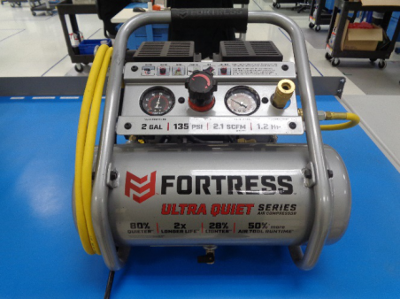 Follow directions for the air compressor for the first-time startup. Once it is powered up, adjust the OUTLET PRESSURE to 60 psi