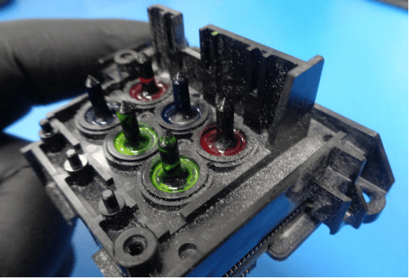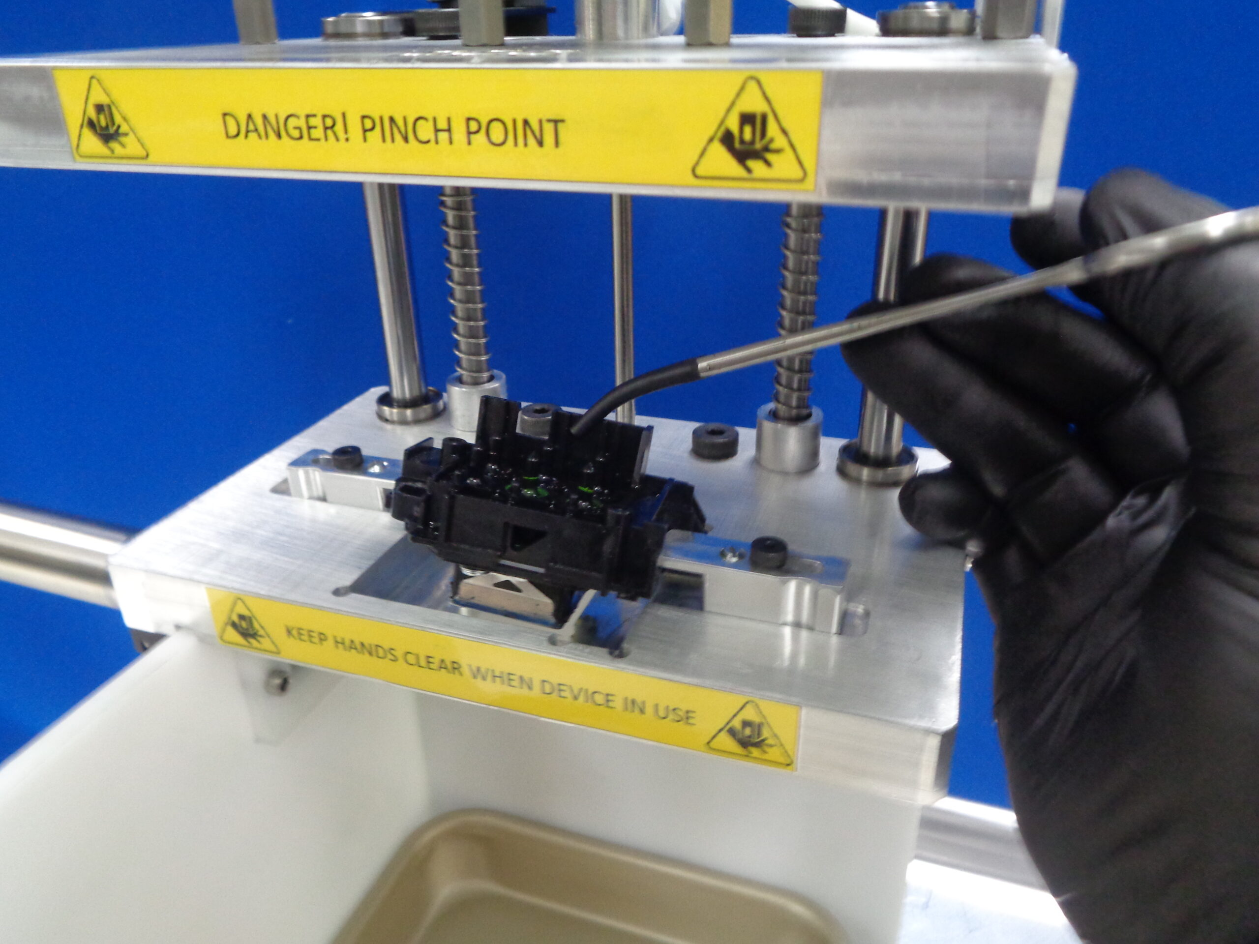 - If each nozzle finishes with no obstruction or damage, head is removed from jig and goes to the next process. Heads that continue to have minimal problems can be set aside to receive further attention.
