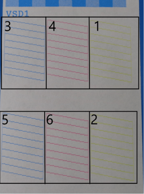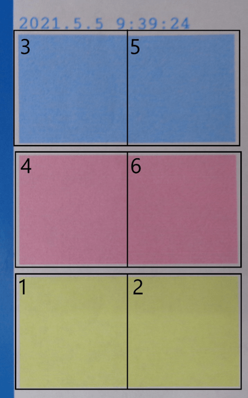 - Fold the prints to have the solid color of the Print test showing and tape to the box.
