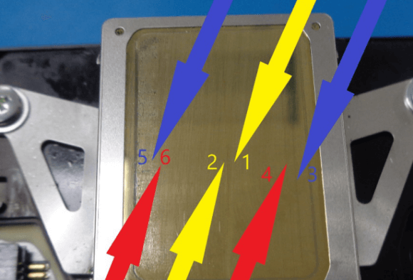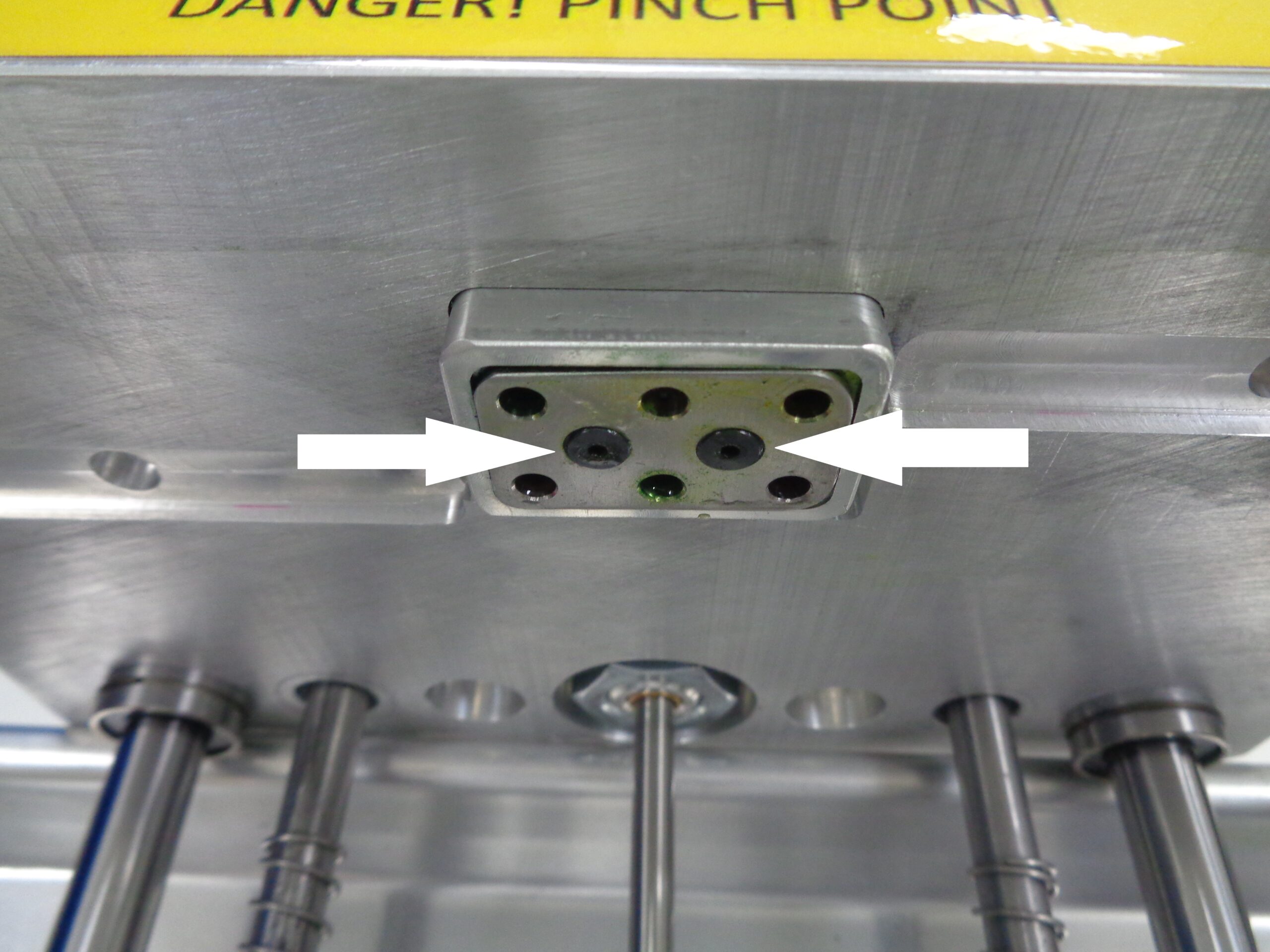 - Refurb Tech installs head into rig, locks it down, and seals plates together. Padded hemostats can be used to hold the short wall of the head to install it in this tight space. Do not use the padded hemostats to grab the nozzles!