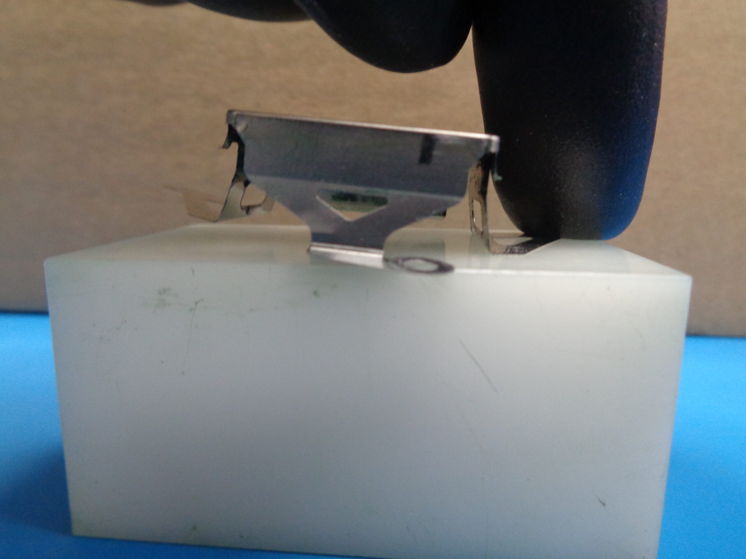 - Notice the angle of the shield when one side is pressed against a flat surface. The sides are NOT perpendicular to the top or bottom
