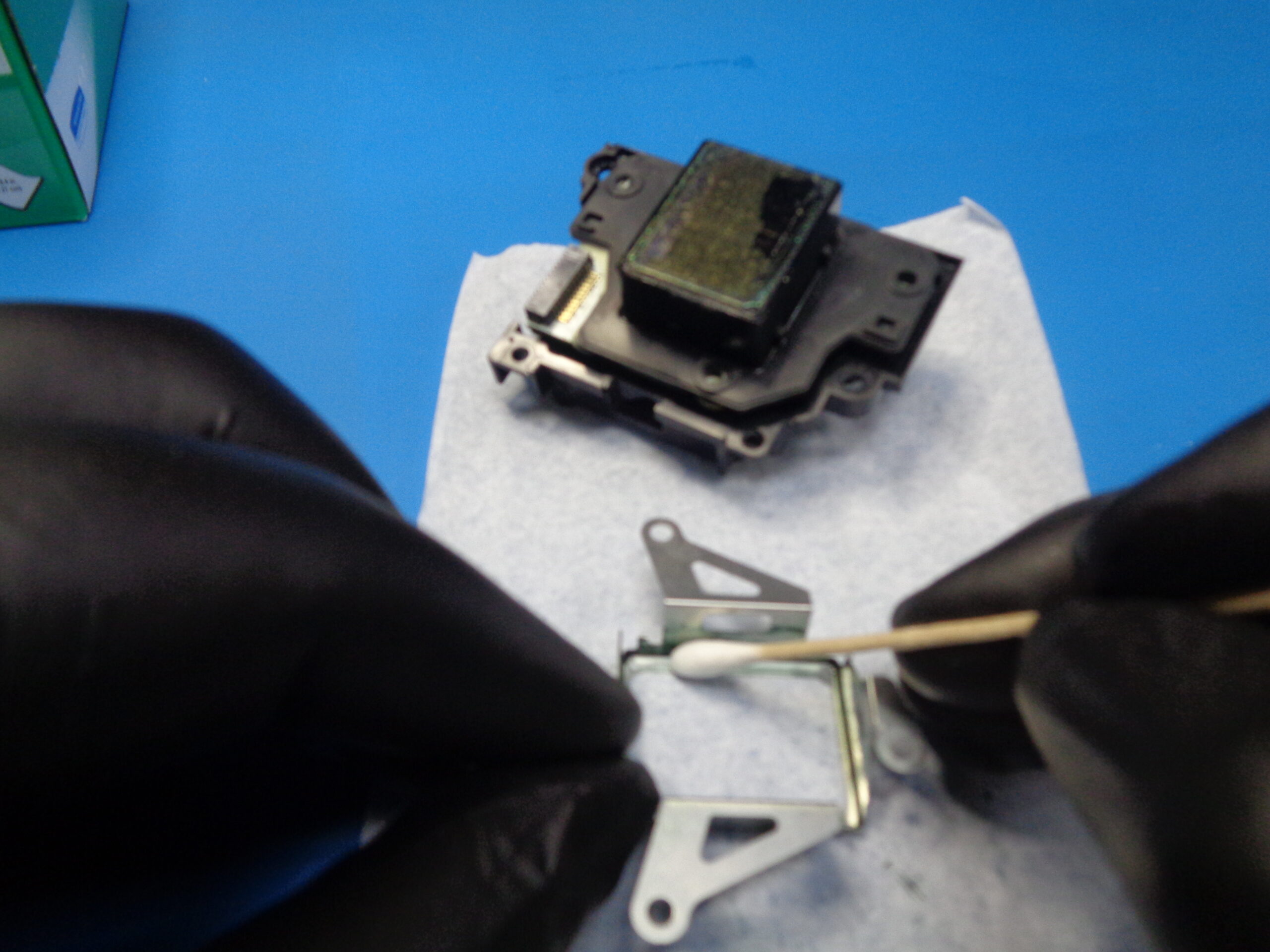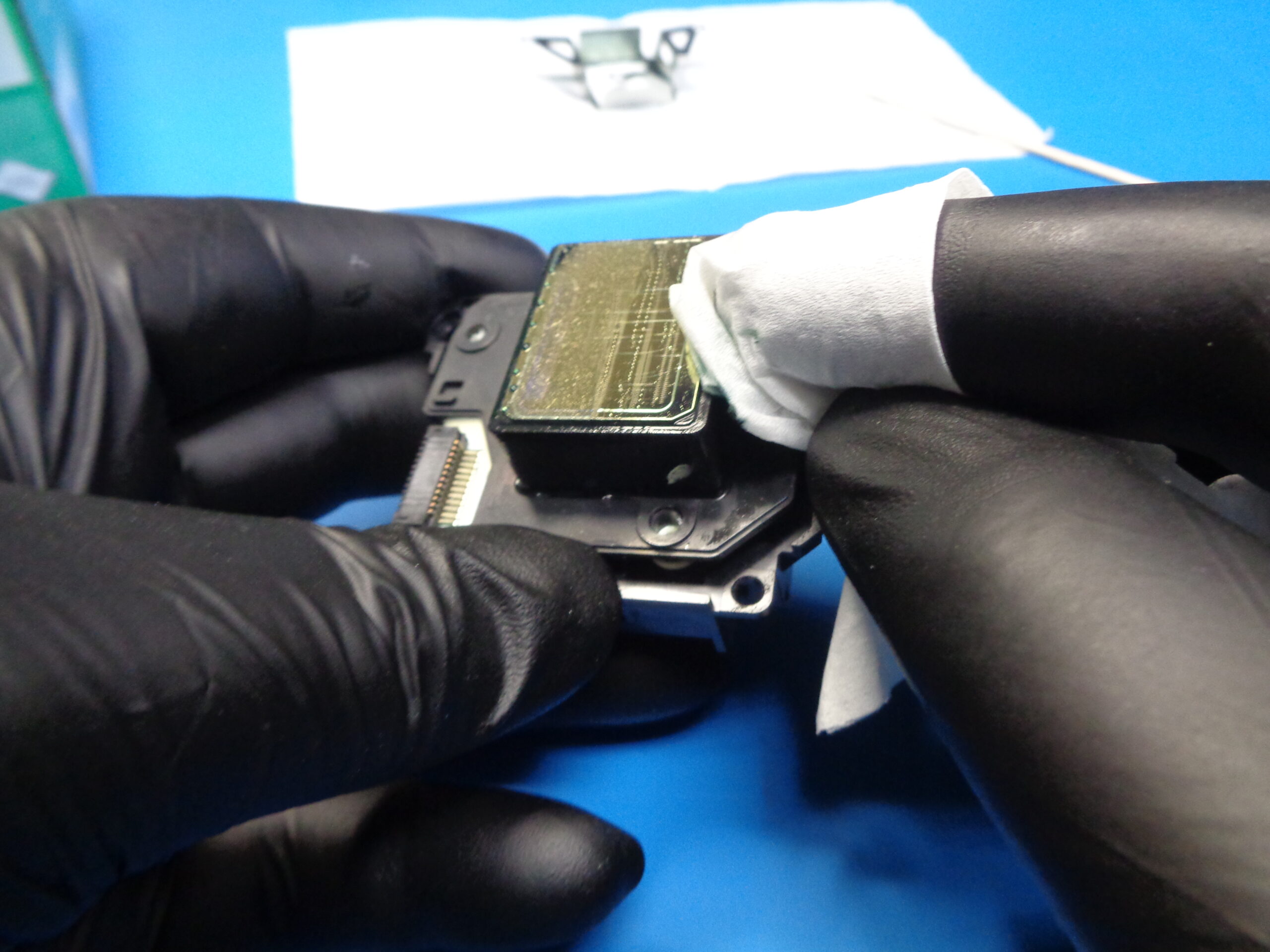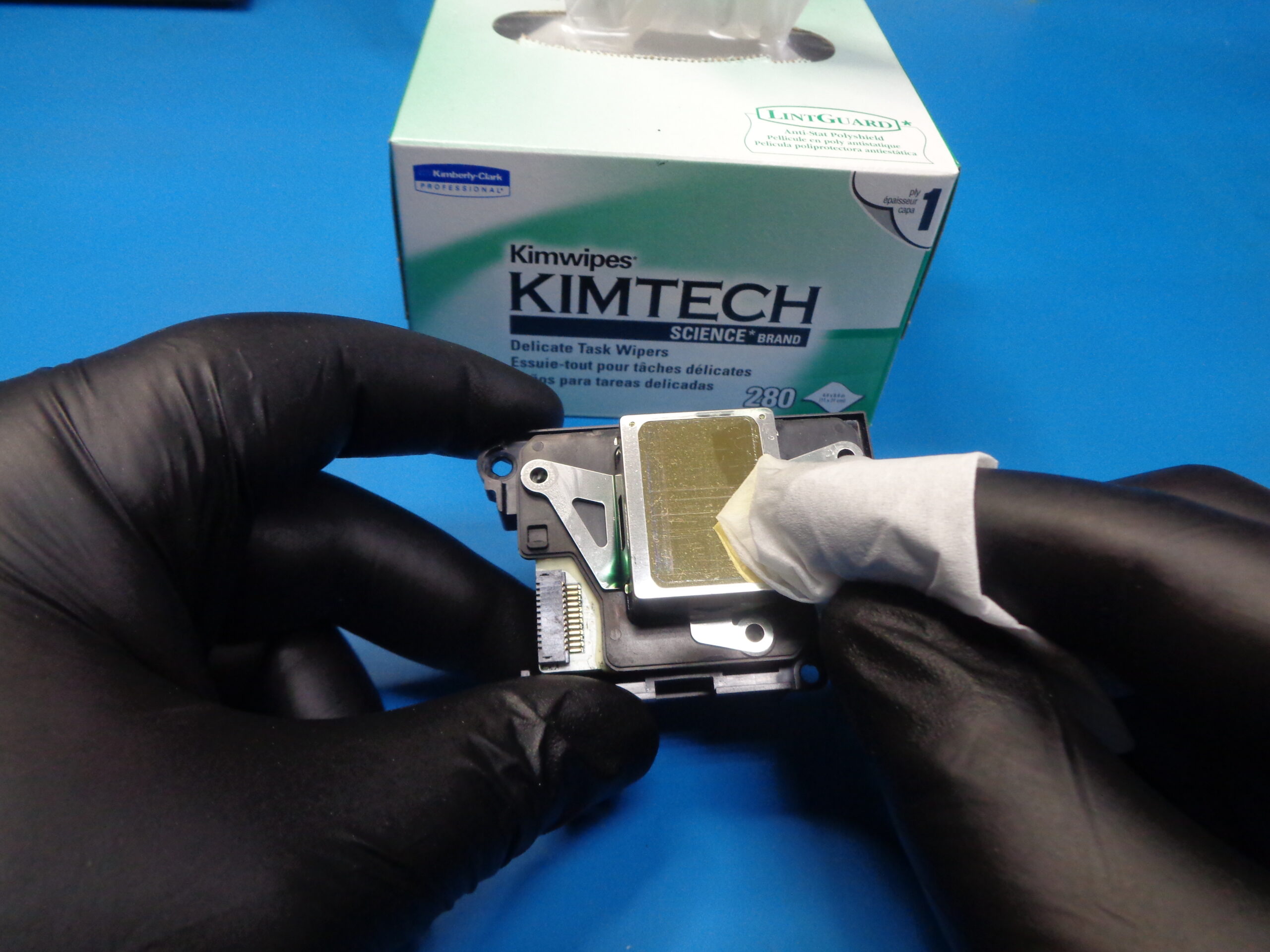 - Good print heads are cleaned thoroughly. A plastic scraper can be used to remove larger dried ink deposits while a lint free wipe and CR02 can be used to wipe down delicate printing surfaces. The top side of the head can be cleaned using nylon bristle brush, lint free wipes, or foam tipped applicators. Typical t-shirt rags and/or cotton tip applicators are not recommended as they can introduce particulates and fibers that can clog the print head.