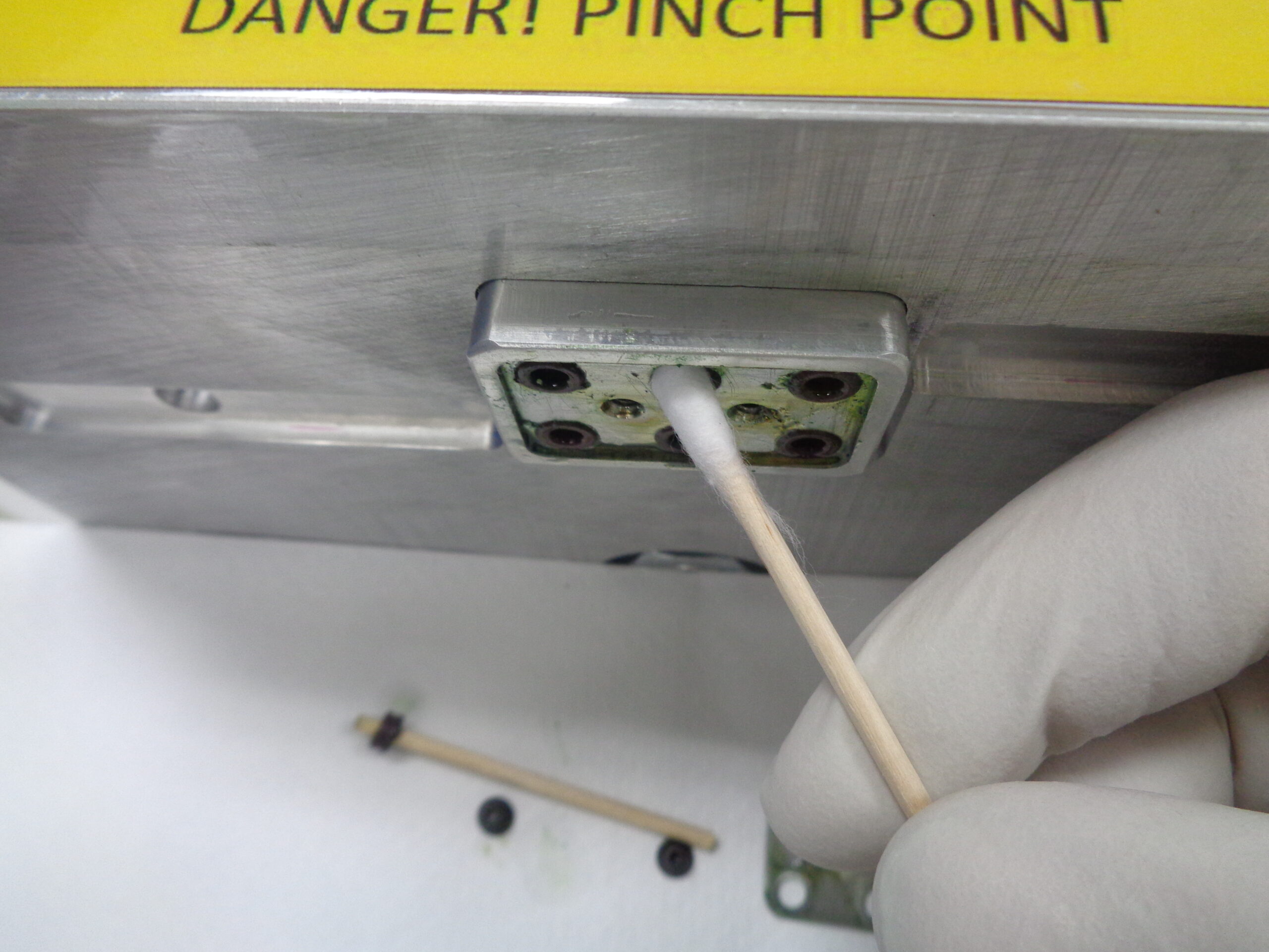 - Use a cotton tip applicator to clean surface where o-rings sits