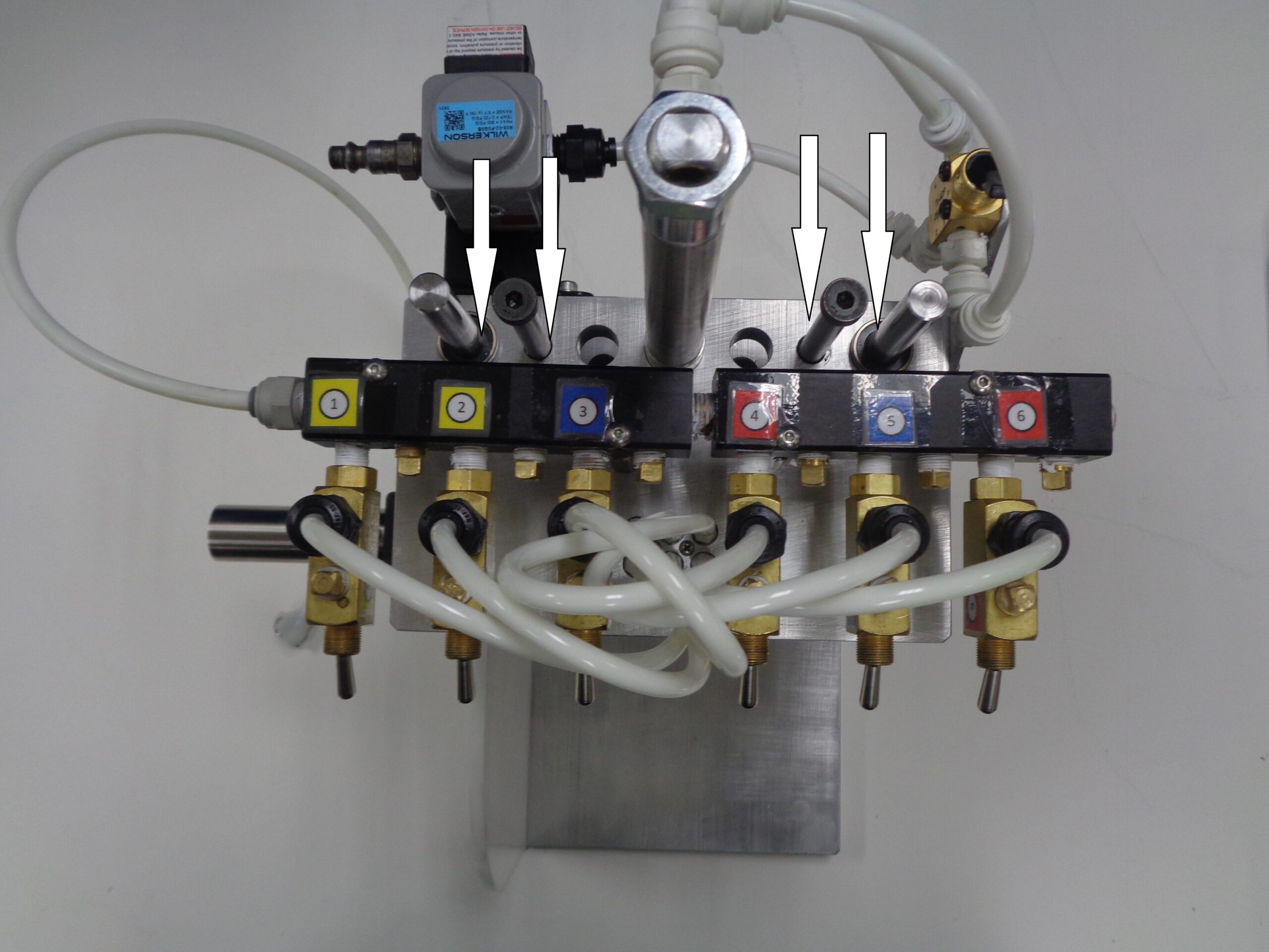 - With the PHID sticker on the right and the little wall closer to you, the input nozzles are numbered 1-6