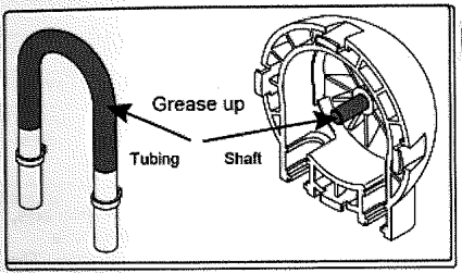 - The section of tubing inside the pump’s head should be removed/replaced periodically. Fresh grease should be applied at this time